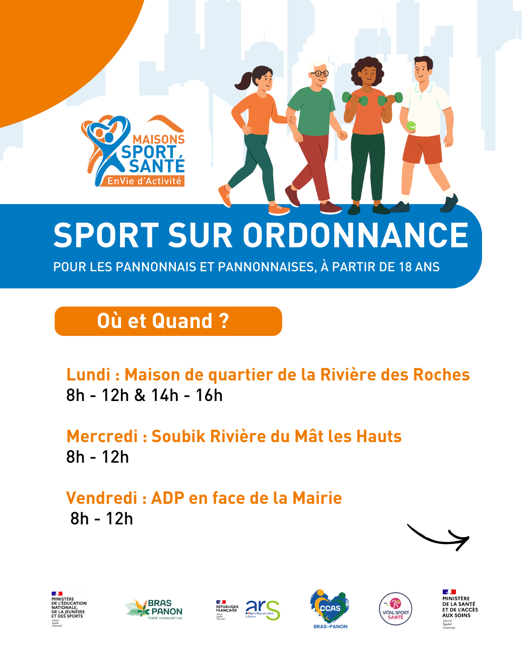 En avril 2024, Vital Sport Santé et la Ville se sont associés pour le lancement de l’expérimentation du projet PRESCRI A LI -SPORT SUR ORDONNANCE (SSO) à Bras-Panon. Pour cette année 2024, le projet portera sur des adultes atteints d’ALD et/ou de maladie(s) chronique(s), résidant à Bras-Panon.