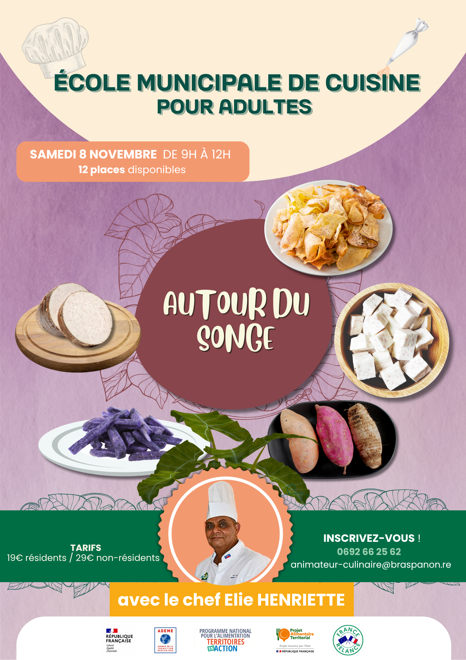 Le samedi 8 novembre 2025, de 9h à 12h, venez découvrir toutes les saveurs et les secrets du songe lors d’un cours de cuisine animé par le chef Élie Henriet 👨🍳✨