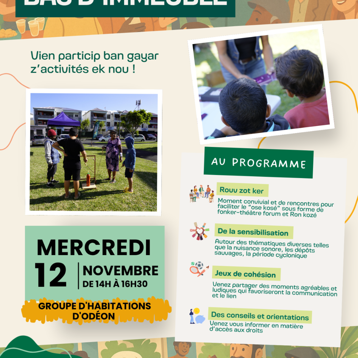 Dans le cadre de la Convention Territoriale Globale (CTG), la ville de Bras-Panon et ses partenaires vous invitent à l'Action Bas d'Immeuble !
