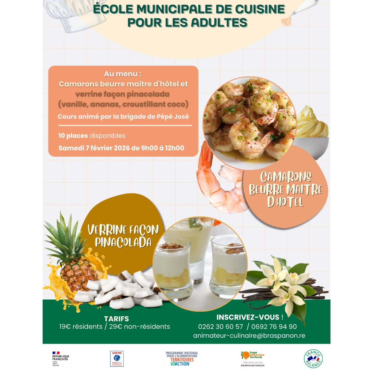 Tarif : 19 € résident / 29 € non-résident (ingrédients et matériel fournis, dans l’esprit des ateliers municipaux de cuisine déjà proposés à Bras-Panon ) .